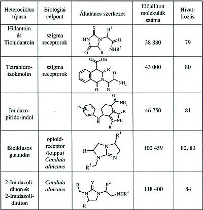 1. táblázat: Néhány heterociklusos kombinatorikus vegyülettár |