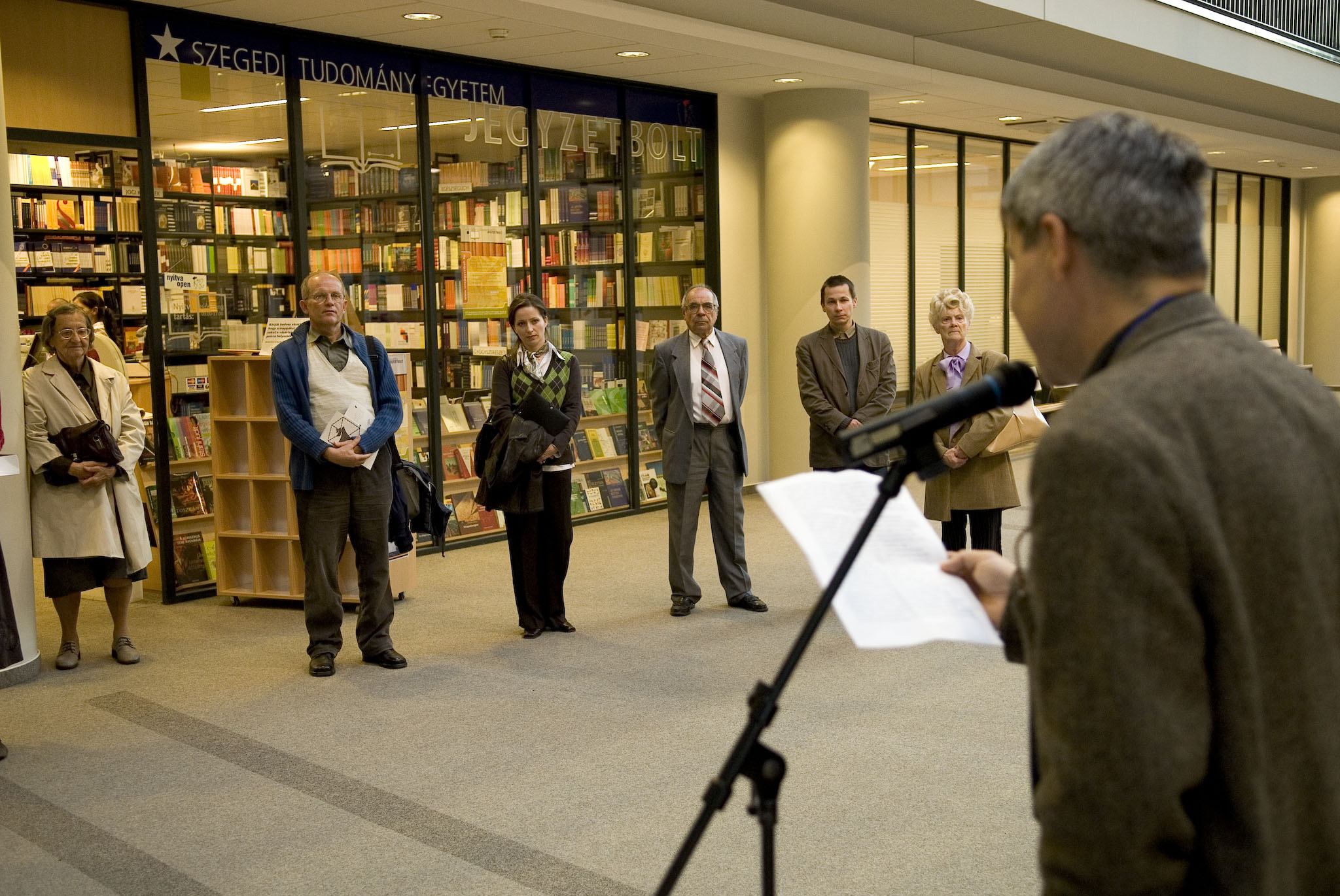 A kiállítást Hab. Orosz István Munkácsy - díjas grafikusművész, érdemes művész, egyetemi tanár, a Széchenyi Irodalmi és Művészeti Akadémia, a Magyar Művészeti Akadémia és a Magyar Formatervezési Tanács tagja nyitotta meg. Köszöntőt mondott Dr. Horváth Lajos a Csongrád Megyei Kereskedelmi és Iparkamara alelnöke.