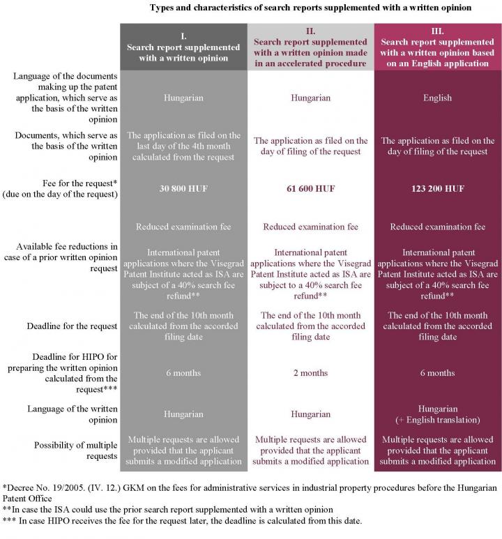 The following three types of search reports supplemented with a written opinion are available (refer to the table below for a visual comparison):