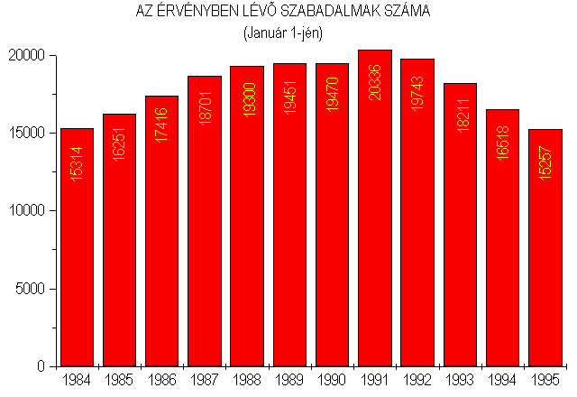 Január 1-jén érvényben lévő szabadalom 15 314 16 251 17 416 18 701 19 300 19 451 19 470 20 336 19 743 18 211 16 518 15 257 Az év folyamán