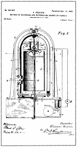A szabadalmat - melynek igénypontja szerint "szilárd mágneses testek, mint acéldrótok, acélszalagok, mágneses befolyással olyan állapotba hozhatók, hogy hírek, beszélgetések és ehhez hasonlók, bizonyos ideig tárolhatóvá válnak és kívánság szerint, ugyancsak mágneses befolyásolással hallhatóan visszahallhatók" - Németországban 109 569 számon lajstromozták. Az igaz, hogy Oberlin Smith - aki a hangokkal foglalkozó kutatókat szerette volna inspirálni - már 1888-ban papírra vetette az elgondolást, de ahhoz még egy évtized kellett, míg Valdemar Poulsen (1869-1942), a koppenhágai telefontársaság mérnöke megalkotta telegraphonját. Ő maga egyelőre nem tulajdonított neki más alkalmazási lehetőséget, mint amivel - mai fogalmak szerint egy üzenetrögzítő a telefont használhatóvá teszi. Ám volt újságíró, aki már a szedőgépek vezérlőberendezését vagy valamiféle telefonújság eszközét látta benne, mindenesetre megjósolta, hogy - az akkoriban még éppen felfelé ívelő pályájú - fonográfot feltétlenül helyettesíteni fogja. A fonográftól még maga Poulsen sem igen tudott elszakadni, annyira hasonlított rá a telegraphonja.