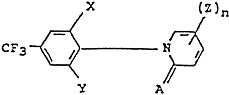 Z4 és Z5 egymástól függetlenül hidrogén-, halogénatom, trifluormetil-csoport, azzal a feltétellel, hogy Z4 és Z5 egyszerre nem lehet hidrogénatom, és Z10 trifluormetil-csoporttól eltérő trihalogén-metil-csoport.