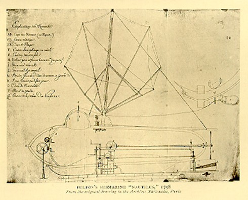 Míg a földhözragadtabb Angliában a tengeri kereskedelemtől prosperáló partvidék pezsgésének kiterjesztése volt az elérendő cél a belsőbb területek elérhetőségét akkor biztosítani képes vízi utak, csatornahálózat által, addig a harcias Franciaország leginkább az angol tengeri hegemóniát megszüntető találmányokra volt vevő. Fulton, ki tudja milyen úton-módon, kapcsolatba került a köztársasági hadügyérrel, Carnot polgártárssal. A kezdetben csak levélváltásokra alkalmat adó közös érdeklődés a konkretizálás szakaszába érkezett a brit kontinentális zárlat elrendelése miatt. A párizsi befolyásos amerikai körökbe gyorsan beilleszkedő Fulton már 1797 decemberében elkészült egy nem túl sikeres torpedó modelljével, majd a torpedók kilövésére legalkalmasabbnak tűnő tengeralattjáró-szerkezeten kezd el dolgozni. Le Havre-ban rendezkedik be, és időről-időre próbára teszi torpedószerkezeteivel a kikötő körül cirkáló brit fregattok teherbíróképességét. Legnagyobb bánatára az angol hajók meg sem rezdülnek a kezdetleges szerkezetek okozta robbanások hatására, ha egyáltalán sikerül célba juttatni őket. A megoldás kulcsának a hajókhoz közelebb férkőző víz alatti szerkezet alkalmazása tűnik. A tengerészeti minisztérium jóvoltából 1799-ben a munkálatok szépen haladnak, és 1800 közepére a bresti hadikikötőben megépül az első modell. A "Nautilus" magától az első konzultól, Bonaparte Napóleontól kap bevetési engedélyt a brit hajók elleni 1801. márciusi támadásban. A minden eredmény nélküli akció után a további támogatást a szerkezet rajzainak mérnöki bizottság elé utalásához kötik, amit Fulton kereken megtagad.