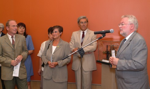A kiállítás Patkós András akadémikus, az Eötvös Lóránd Fizikai Társulat elnöke nyitotta meg |
